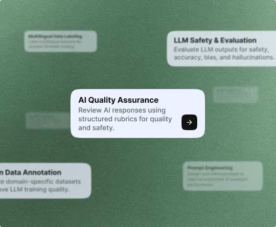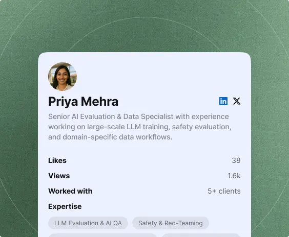 Whether you’re scaling model evaluation or managing human-in-the-loop operations, find verified specialists for your exact task type.